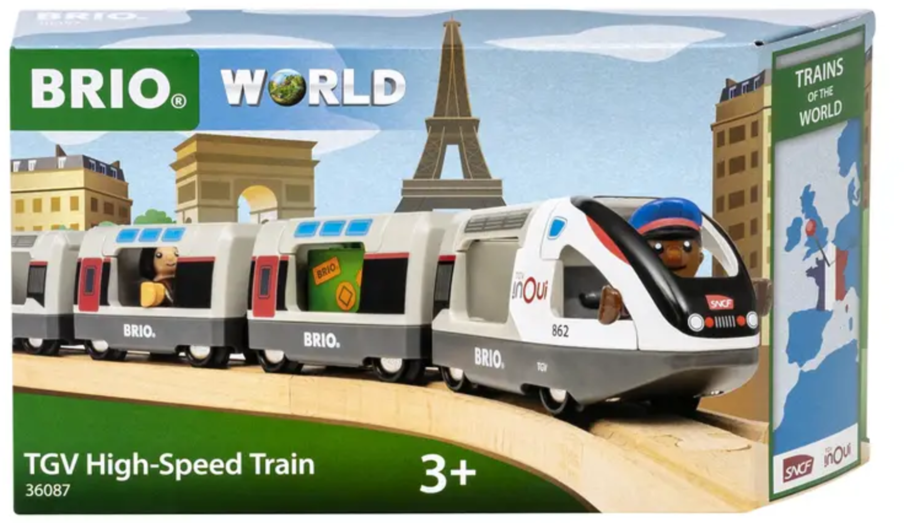 Viaggia a bordo del TGV dalla romantica Parigi alla Costa Azzurra. Questo treno ad alta velocità, dal design autentico, può ospitare 6 personaggi e può essere integrato nel mondo BRIO. Scopri le famose tratte ferroviarie di Francia, Italia, Spagna e Germania. Il gioco stimola la creatività, il gioco di ruolo e le capacità motorie dei bambini, offrendo ore di divertimento.