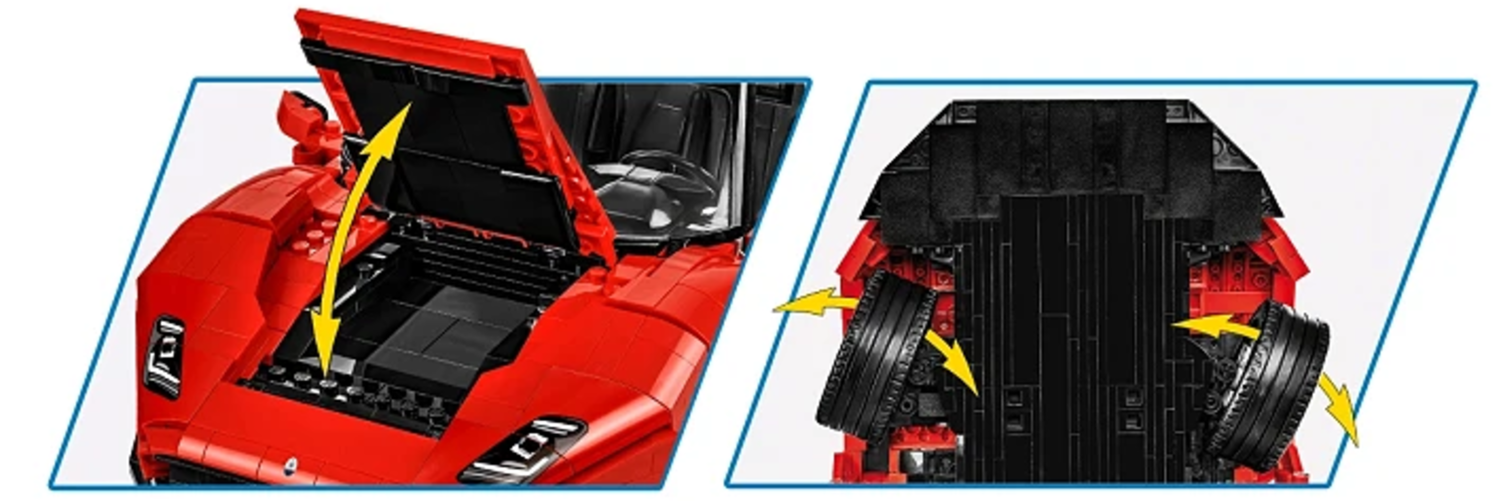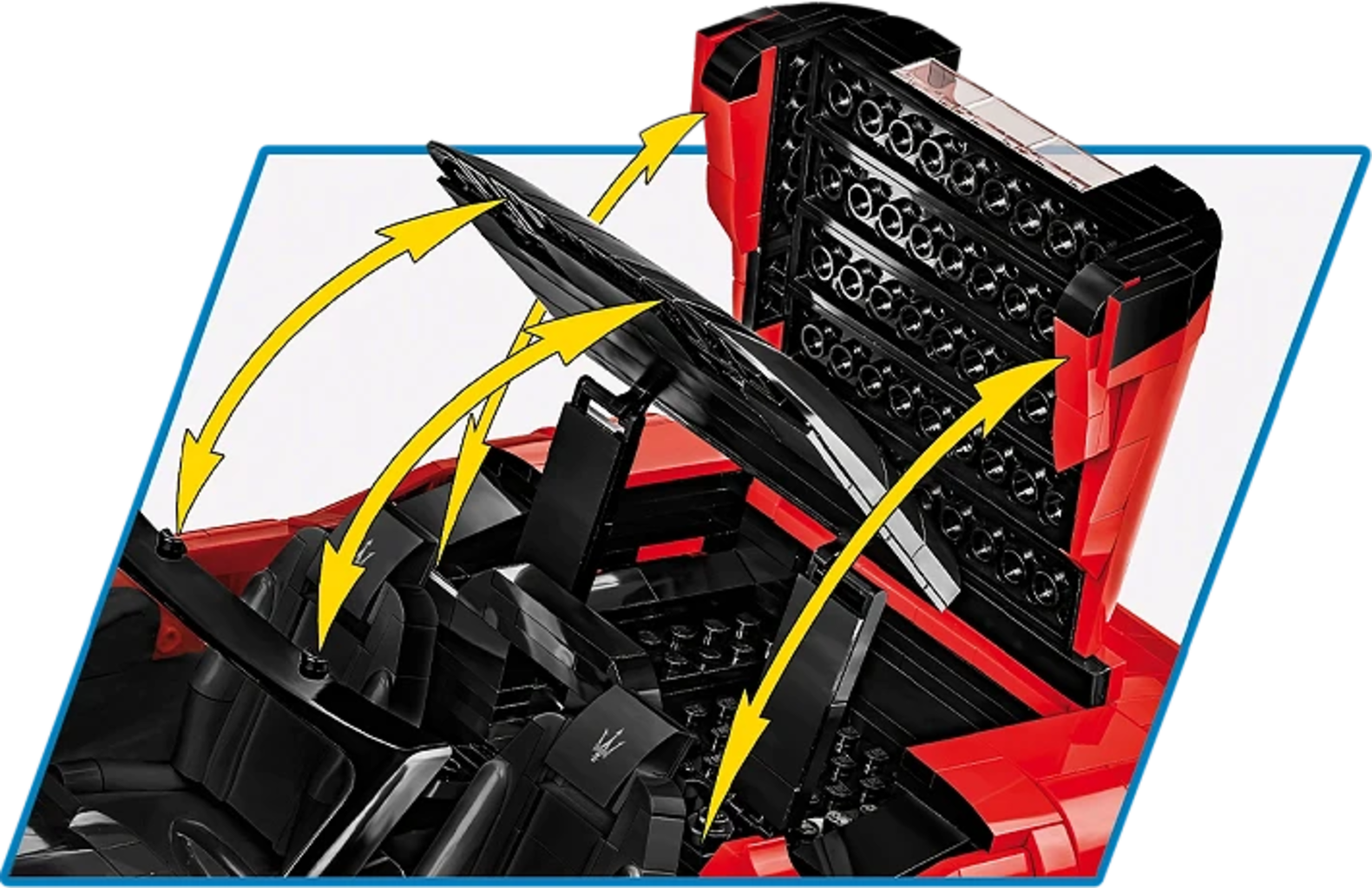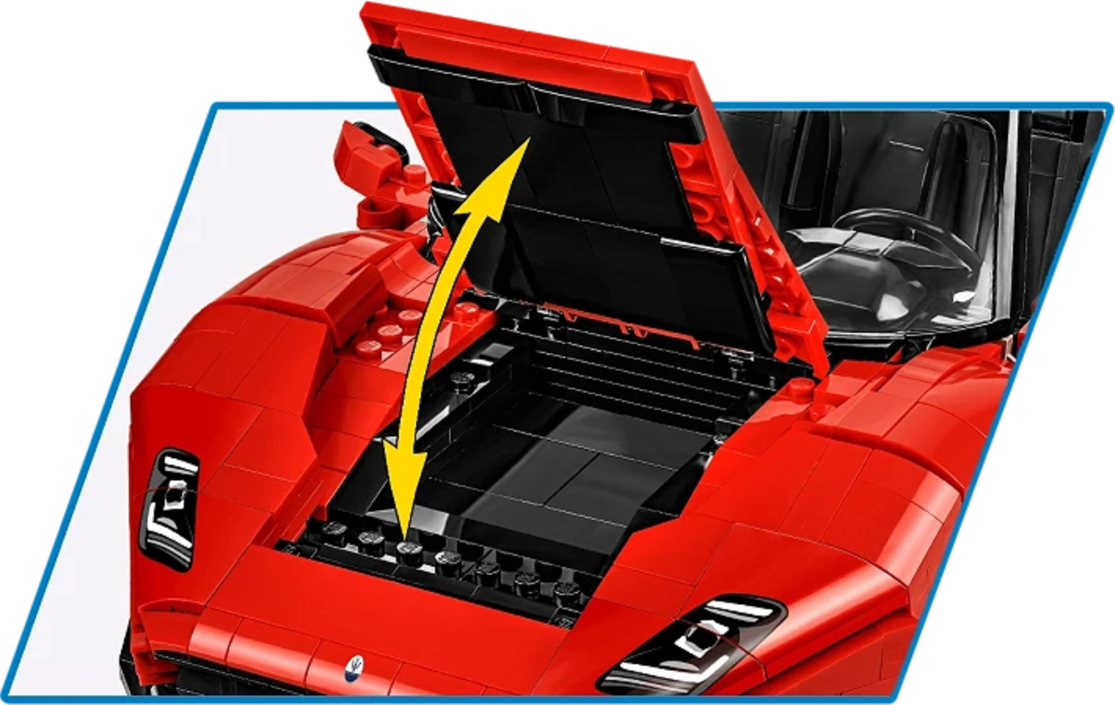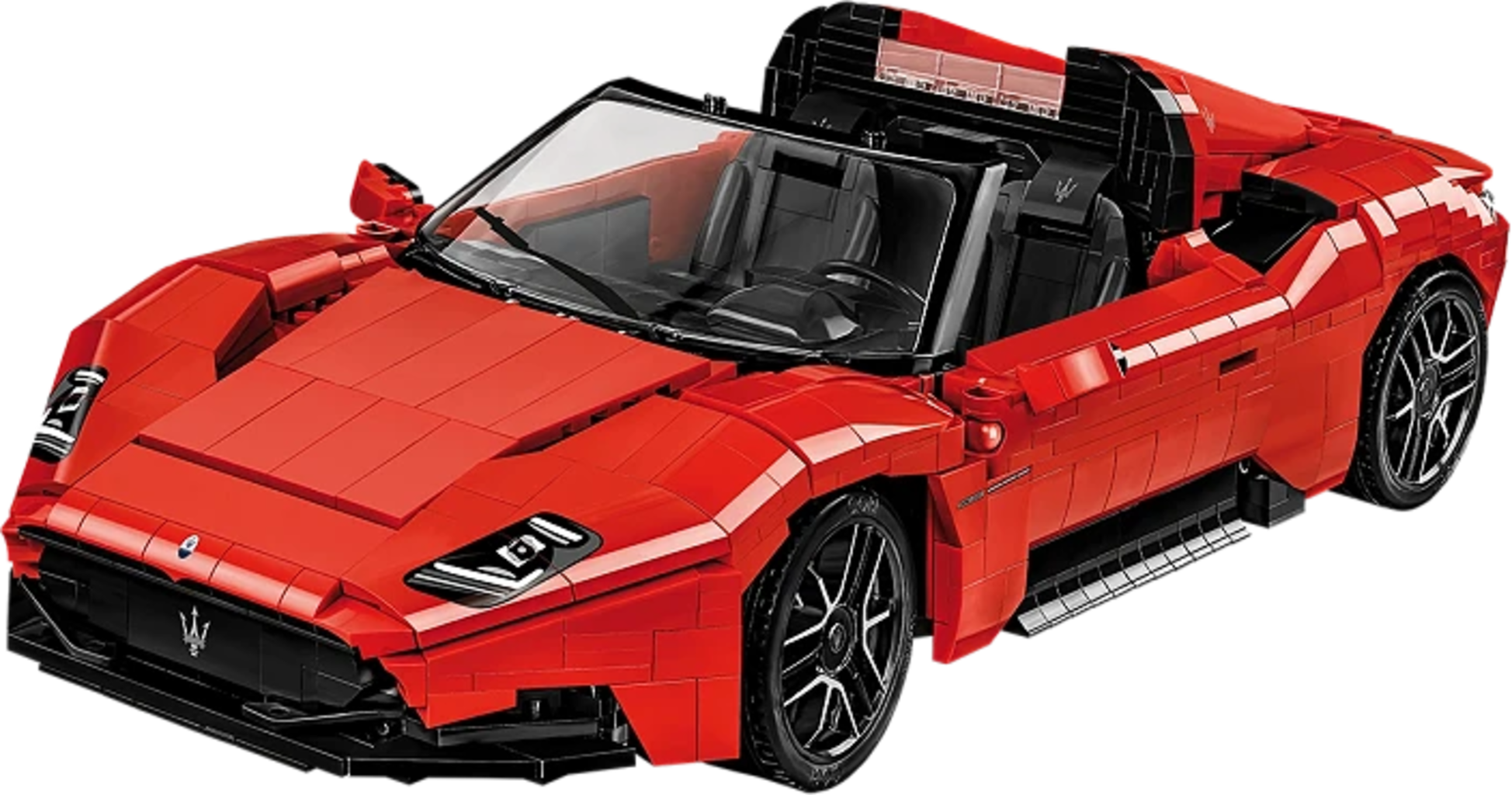 Oltre 2.100 mattoncini permettono di costruire la sorprendente Maserati MC20 Cielo in un grande modello di COBI ricco di dettagli. L'eleganza e il lusso italiano si riflettono nelle linee accurate e nelle soluzioni tecniche studiate con attenzione. Il tetto retrattile funzionante consente di trasformare la supercar in versione cabrio in pochi gesti.