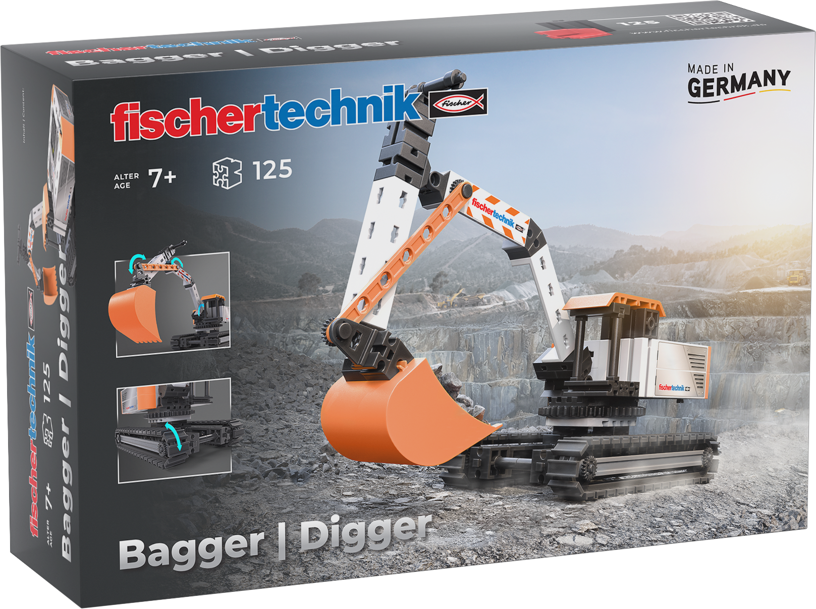 Con il fischertechnik Bagger ogni cantiere diventa un'avventura entusiasmante. Grazie al braccio mobile e alla pala, i bambini possono scavare buche e trasportare materiali proprio come in una vera area di lavoro. L'escavatore è facile da assemblare e conquista con movimenti realistici e la tipica colorazione vivace di fischertechnik. Perfetto per giovani costruttori e costruttrici che amano scoprire, giocare e sperimentare.