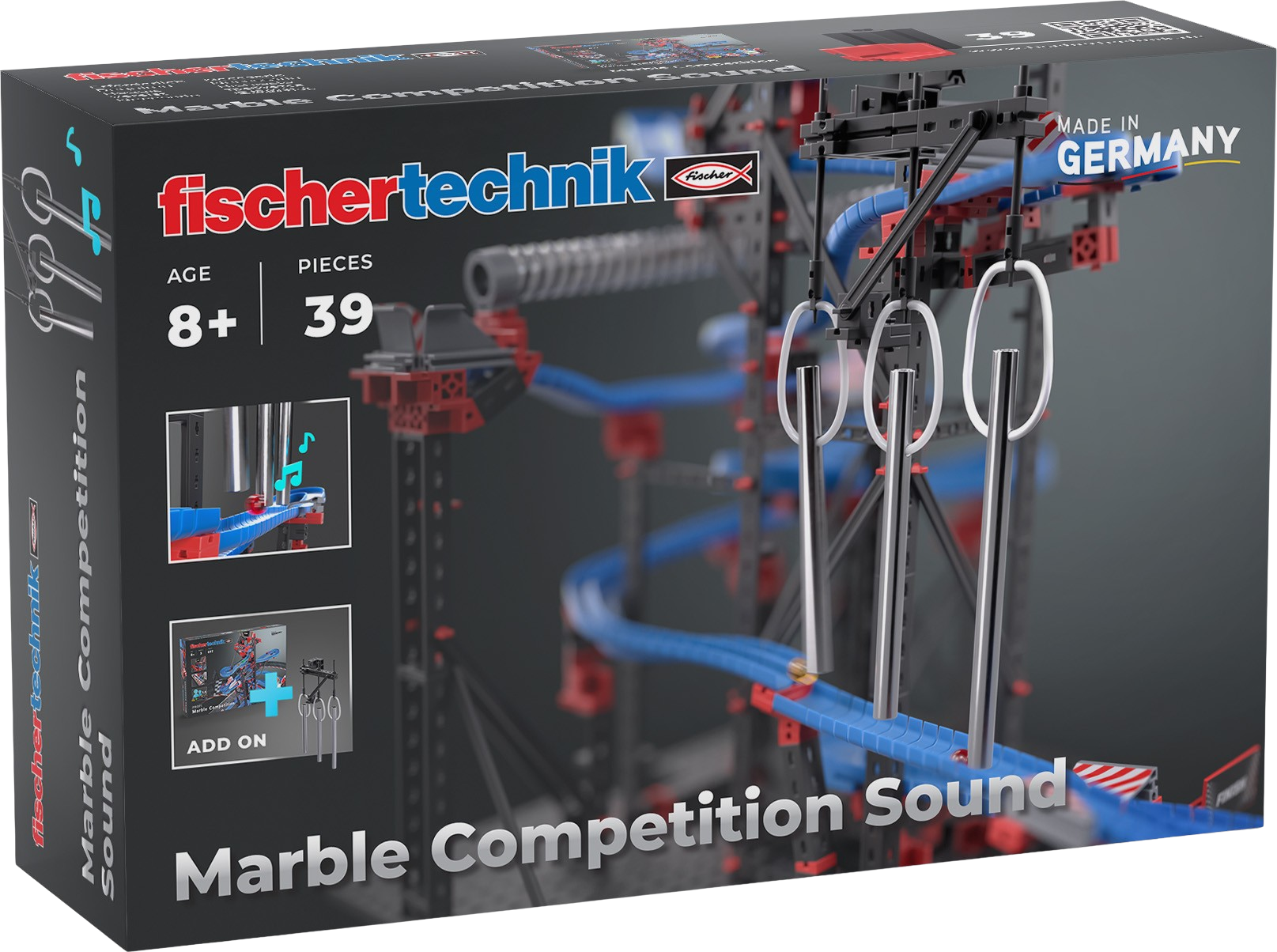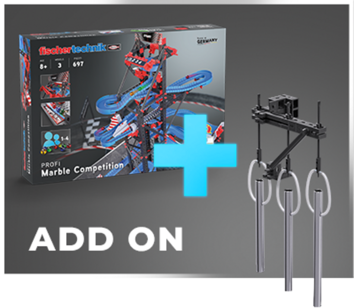 Con l'espansione Marble Competition Sound entra in gioco anche la musica. I tubi sonori producono effetti acustici sorprendenti e allo stesso tempo funzionano come ostacoli regolabili per le biglie. Ogni gara diventa più divertente e imprevedibile. Perfetta per ampliare in modo creativo i modelli Marble Competition e aggiungere nuove occasioni di gioco.