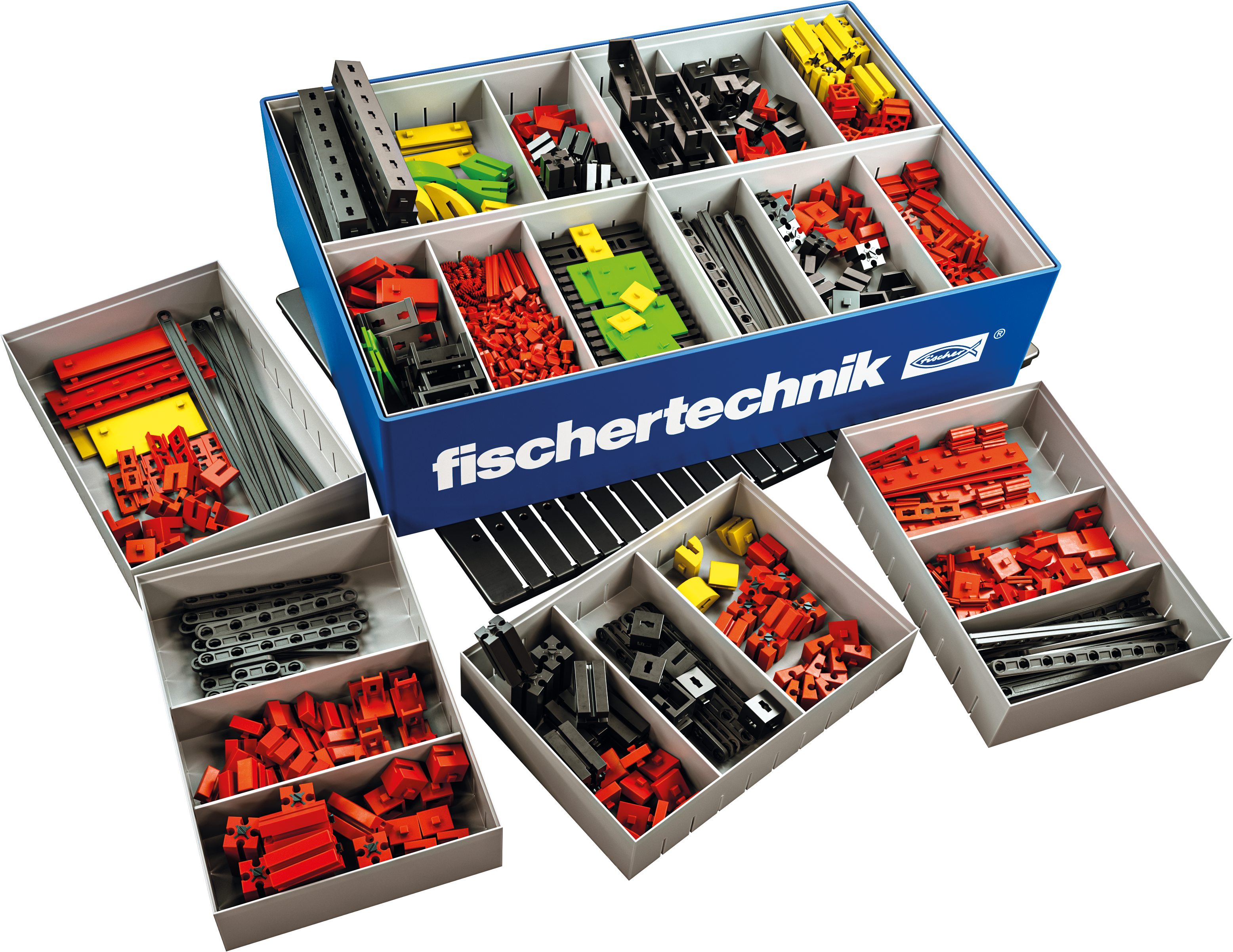 La guida rapida aiuta a comprendere facilmente il funzionamento dei pezzi fischertechnik e permette di iniziare subito a costruire. Molto pratica la scatola con otto inserti che mantiene tutto in ordine, riduce i tempi di ricerca e rende semplice anche il riordino. La grande piastra di base funge da coperchio robusto e da base stabile per nuovi modelli.