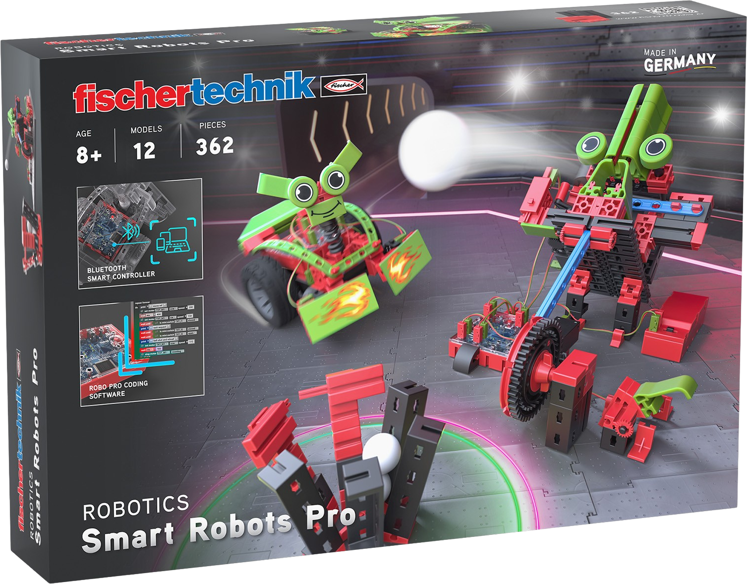 Con Smart Robots Pro i bambini dagli 8 anni in su entrano nella robotica e nella programmazione in modo pratico. Che si tratti di un robot mobile con rilevamento degli ostacoli, di una giostra luminosa o di un sistema di allarme, i dodici modelli possono essere programmati e controllati in modo personalizzato. La software ROBO Pro Coding e il materiale didattico incluso facilitano l'apprendimento e stimolano la comprensione tecnica e il pensiero creativo. Un set ideale per piccoli sviluppatori con grandi idee.