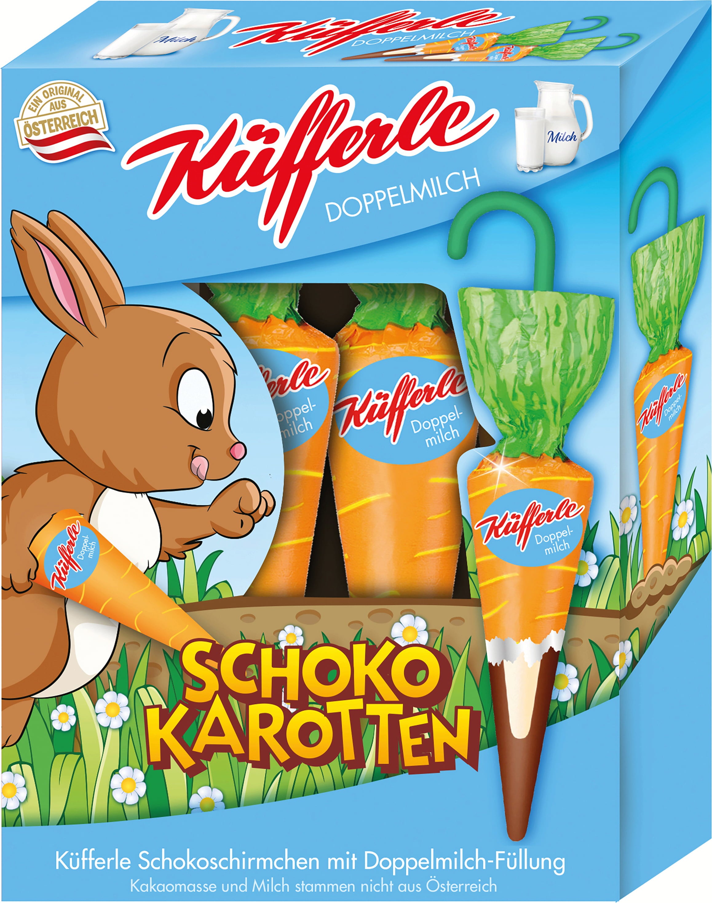 Se ami quel tocco in più, le carotine di cioccolato Küfferle sono la scelta ideale. Sotto il rivestimento di classico cioccolato al latte si nasconde un cuore di delicata crema al latte, che regala un’esperienza di gusto particolarmente morbida e avvolgente. Perfette come decorazione pasquale golosa o come piccolo regalo, aggiungono una nota dolce e originale alle feste di Pasqua.