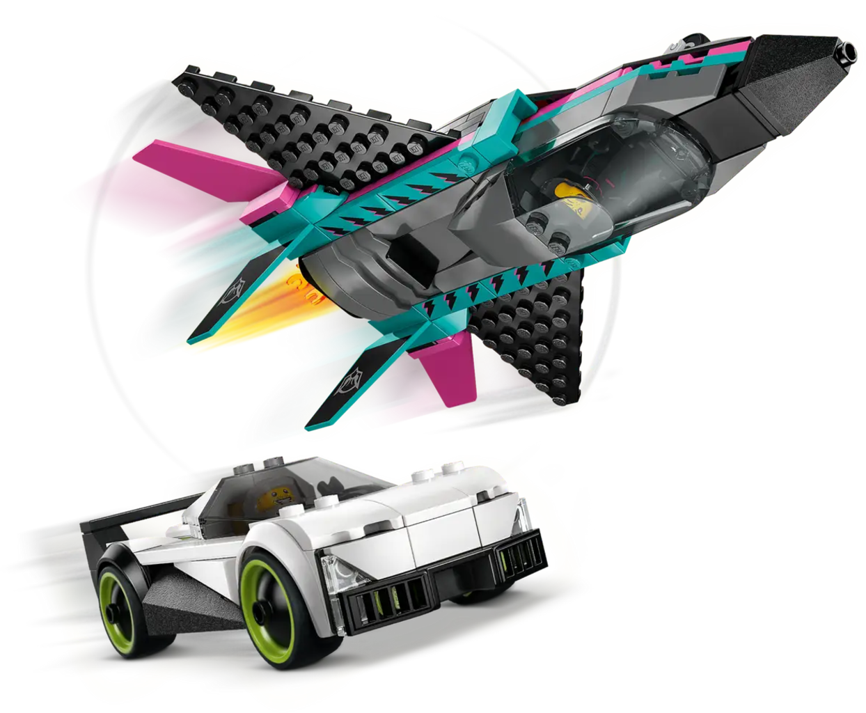 Set LEGO City Jet contro Auto sportiva per bambini dai 6 anni, con supercar e jet costruibili e minifigure dei piloti. Le funzioni realistiche e il design dinamico stimolano il gioco di immaginazione e le sfide di velocità, con costruzione intuitiva supportata dall’app LEGO Builder.
