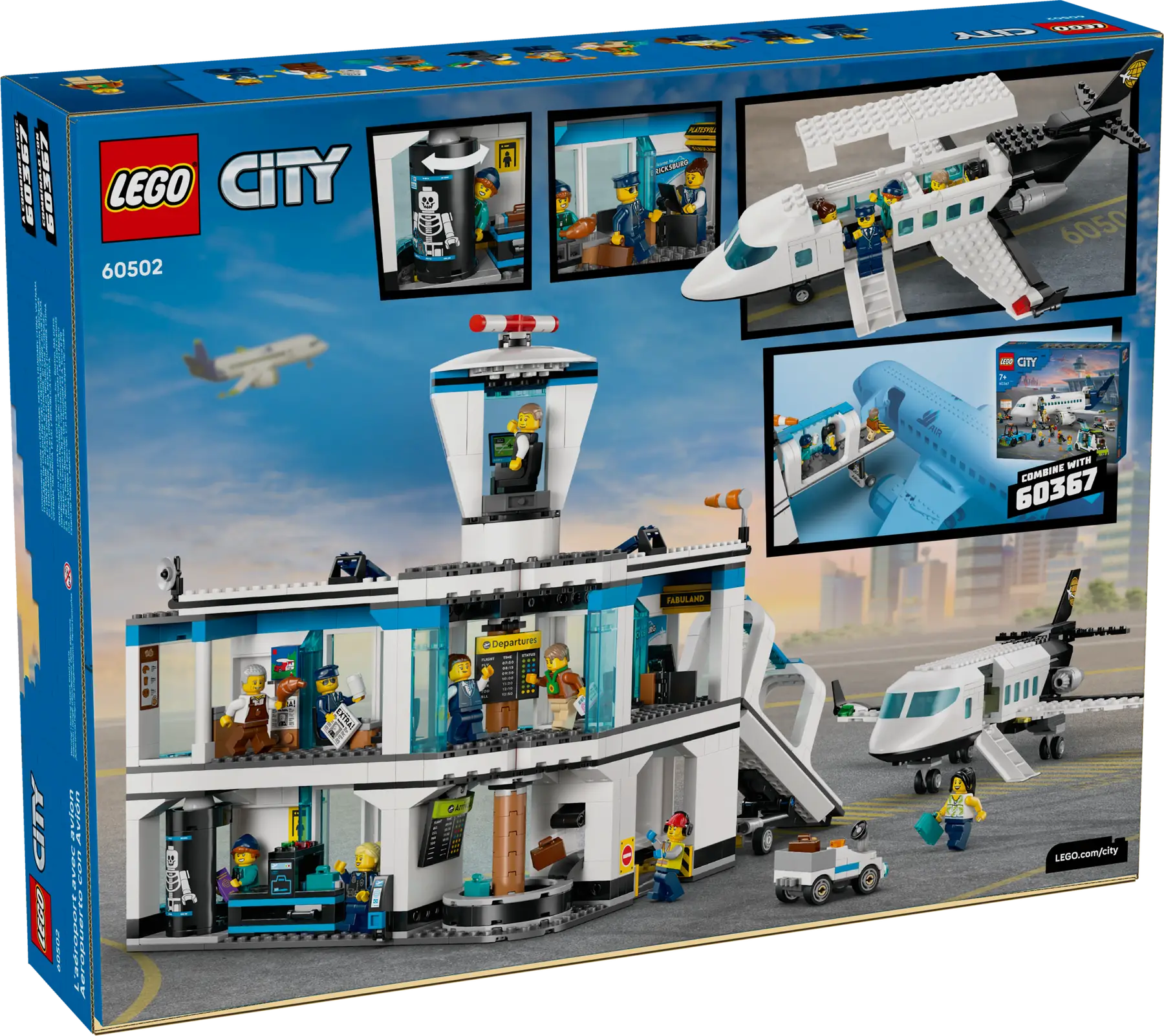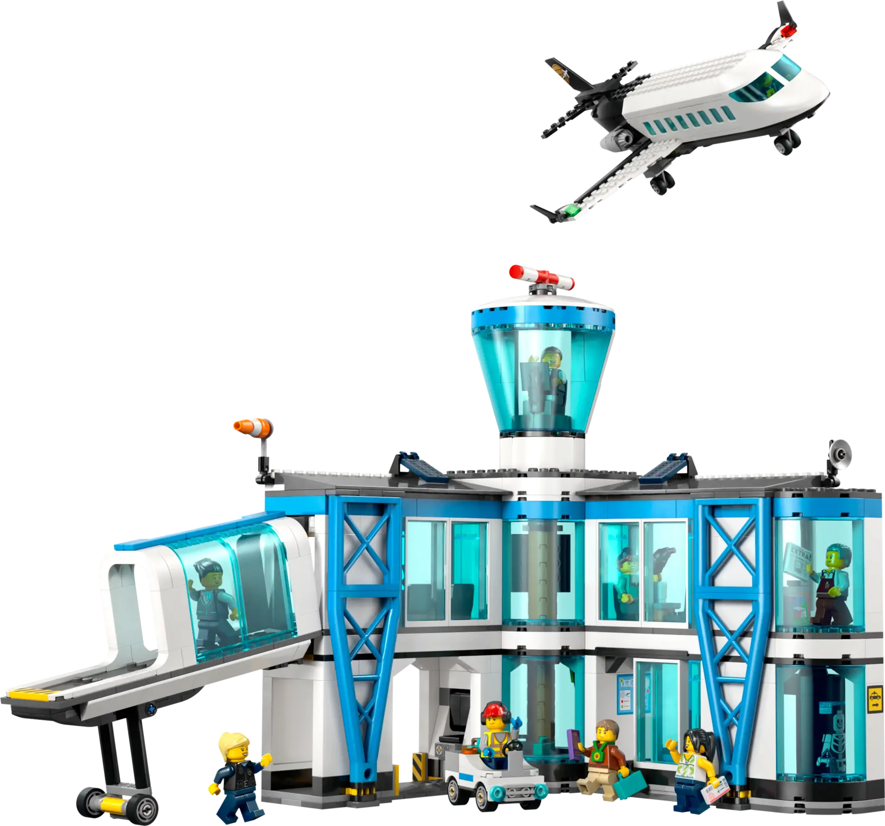 Playset Aeroporto con aereo LEGO City per bambini dagli 8 anni, con terminal aeroportuale, aereo passeggeri, ponte d’imbarco, trattore aeroportuale e 9 minifigure. Le funzioni realistiche e i numerosi accessori stimolano il gioco di ruolo e le avventure di viaggio, con la possibilità di costruire anche in modalità collaborativa tramite l’app LEGO Builder.