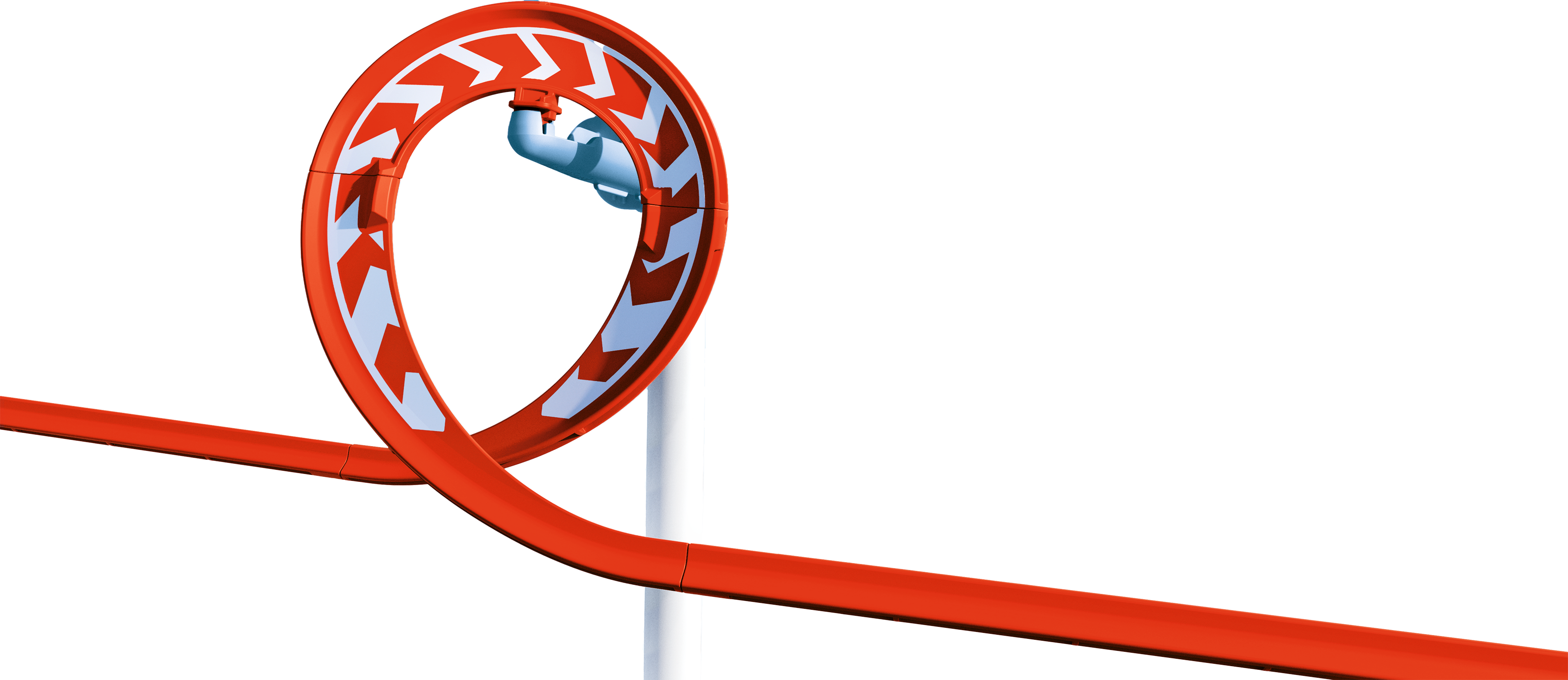 Contenuto: 3 elementi per giro della morte, 2 morsetti, 2 adattatori, 1 rotaia adattatrice con snodo sferico, 3 binari