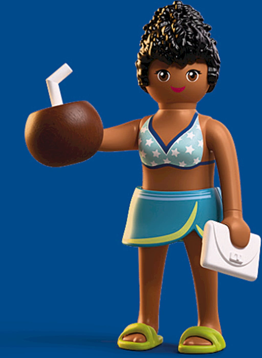 Contenuto: 1 turista, 1 gonna, 1 borsa, 1 paio di sandali, 1 tavolo alto, 1 cocktail al cocco, 1 borsa da spiaggia, 1 telo mare, 1 crema solare, 1 snack gelato.