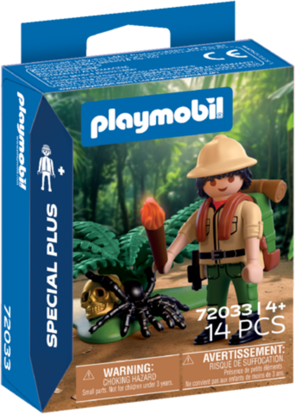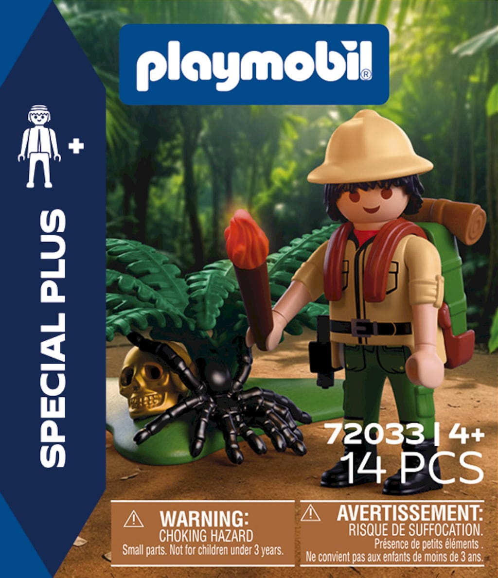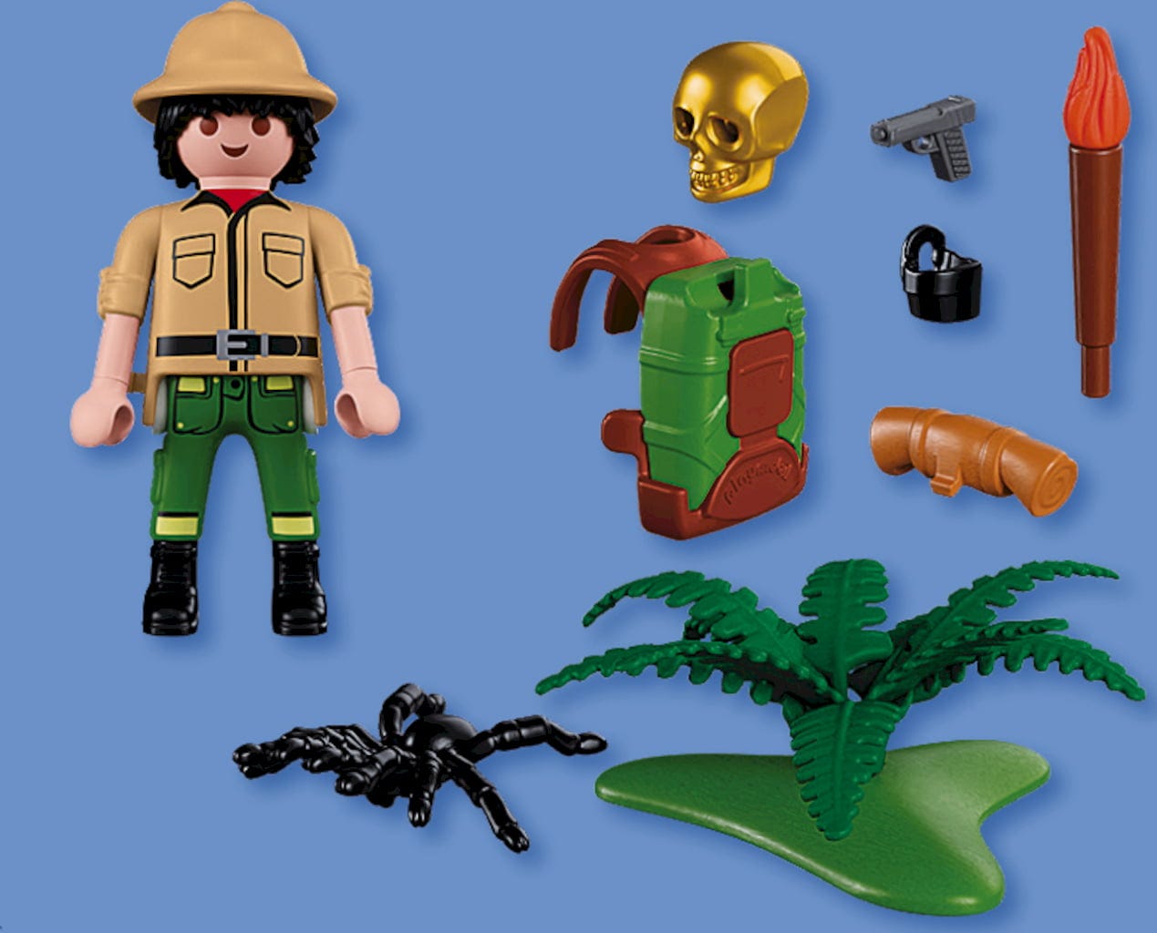 Armato di torcia, casco coloniale e zaino, l'avventuriero si addentra nel folto della foresta, sempre alla ricerca del misterioso teschio dorato. Muovendosi furtivamente con cautela, agendo con coraggio e sconfiggendo la gigantesca tarantola, questo set porta emozionanti avventure nella giungla direttamente nella cameretta dei bambini.