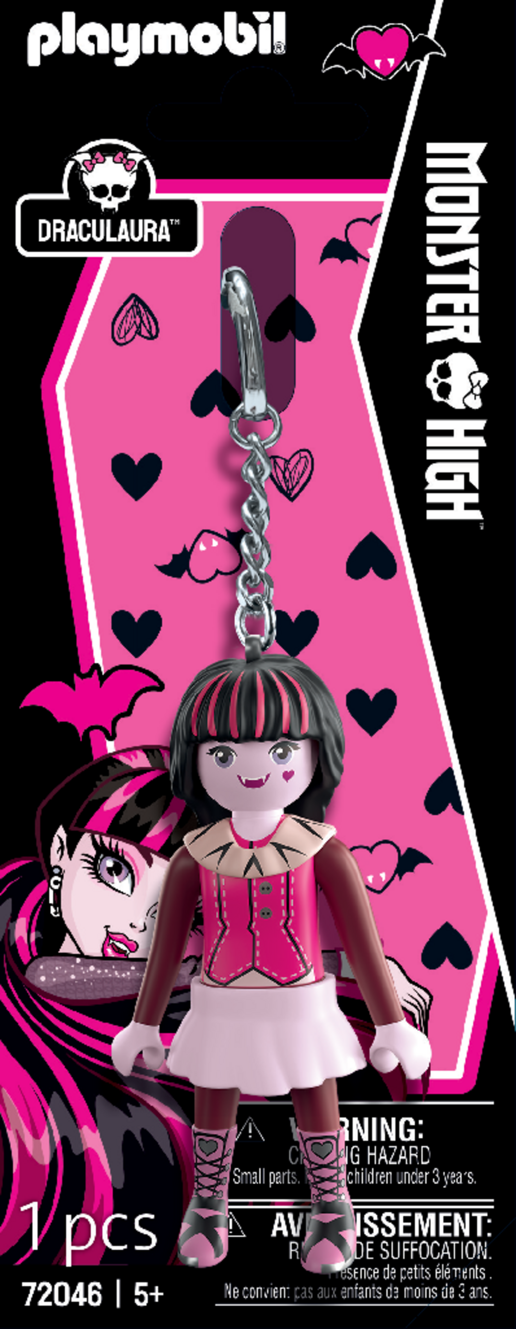 Draculaura ti accompagna ovunque: sulla borsa, sul portachiavi o nello zaino. Con il suo abito rosa e nero, i dettagli a forma di cuore e il suo stile inconfondibile, porta con giocosità un tocco di magia vampiresca nella vita di tutti i giorni.