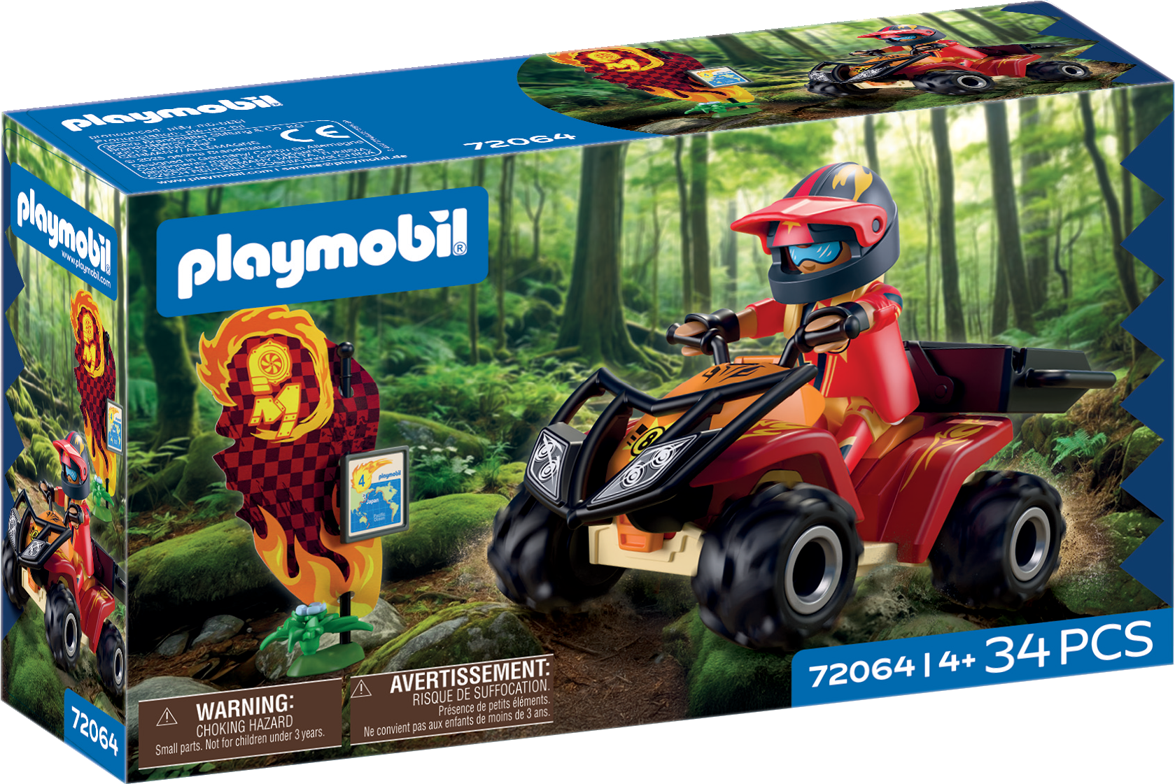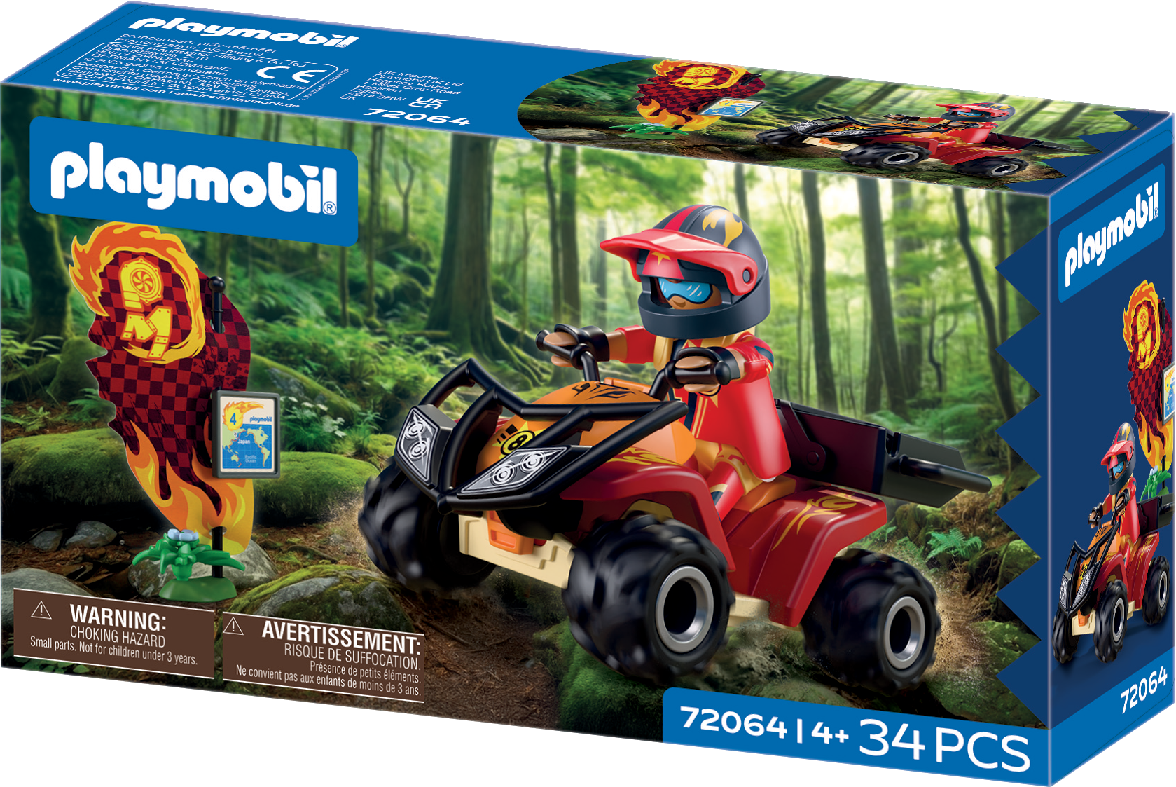 Con l'Offroad Quad PLAYMOBIL, i bambini possono sfrecciare tra le foreste. Il piccolo pilota affronta sentieri stretti, sottobosco e ostacoli, grazie al paraurti rimovibile e all'ingegnoso vano portaoggetti per attrezzi, binocolo e borraccia.
