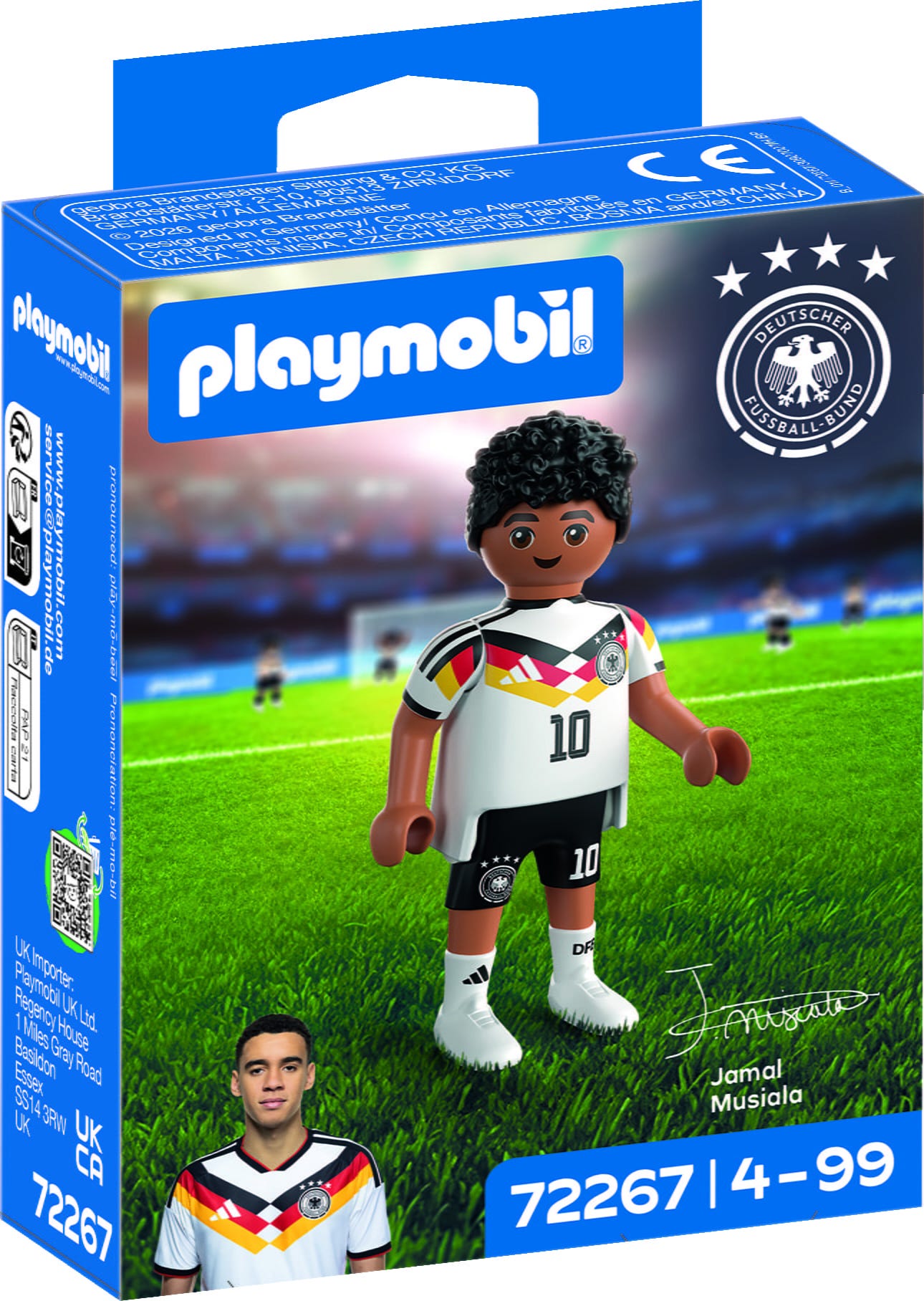 La figura PLAYMOBIL di Jamal Musiala è un vero gioiello che non passa inosservato e un oggetto imperdibile per tutti i tifosi della nazionale tedesca.