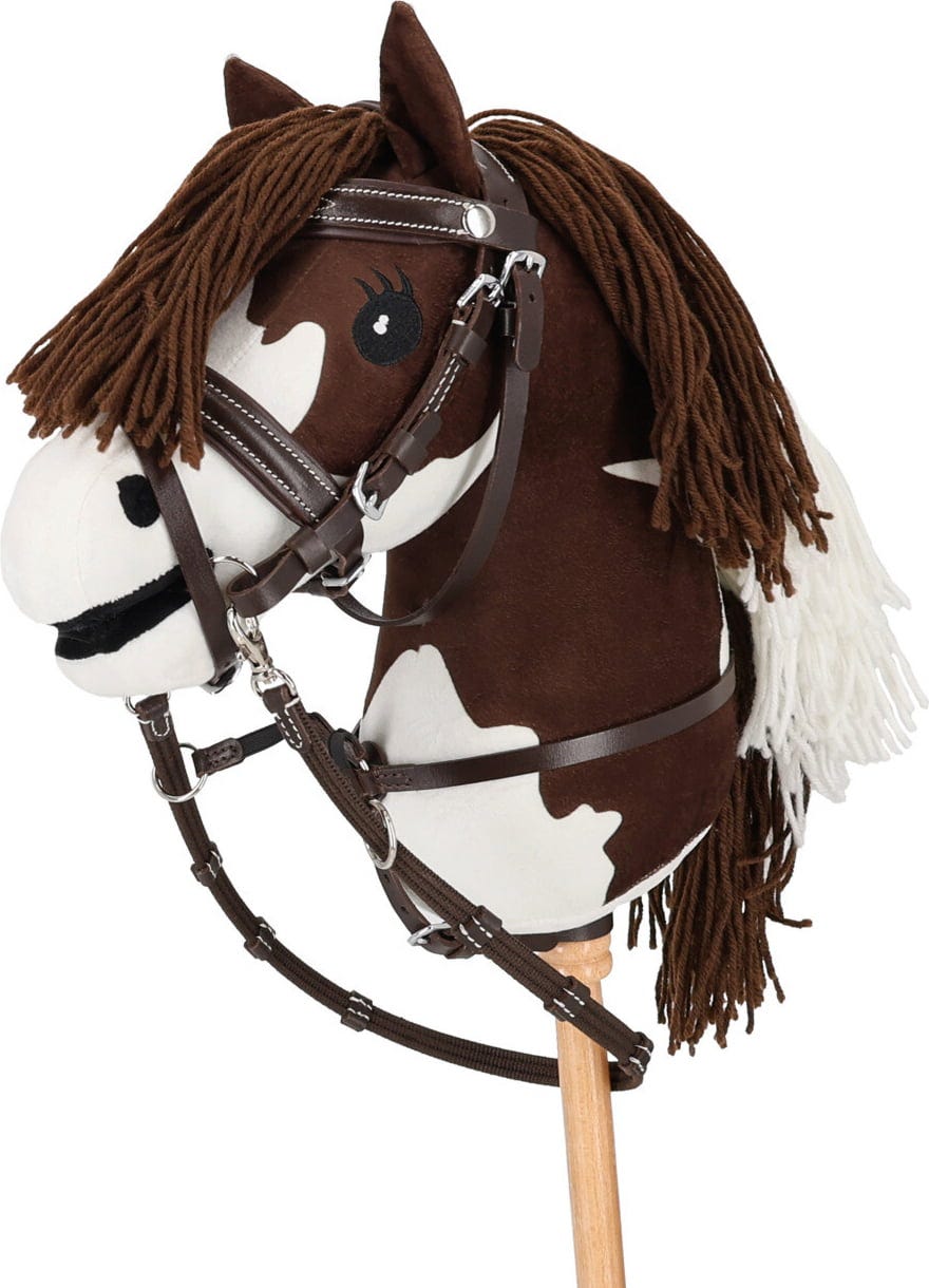 Le cinghie elastiche a forcella garantiscono una vestibilità perfetta e si muovono in armonia con il cavallo a bastone, rendendo il gioco ancora più realistico. Per una regolazione ottimale, la martingala è regolabile in due punti. Le robuste finiture in zinco completano il design, assicurando stabilità e lunga durata.