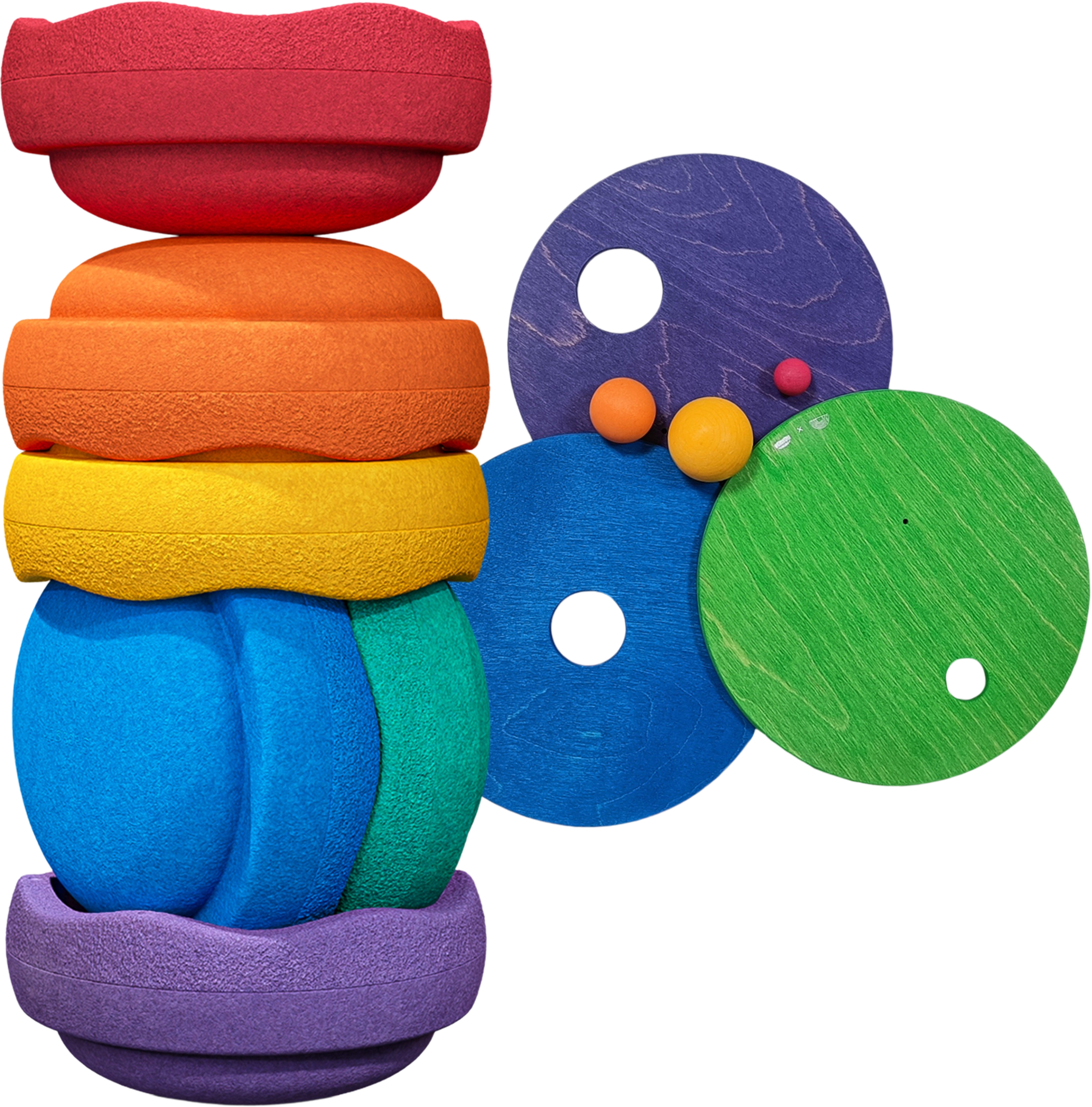 - 3 dischi in legno e 3 sfere in legno