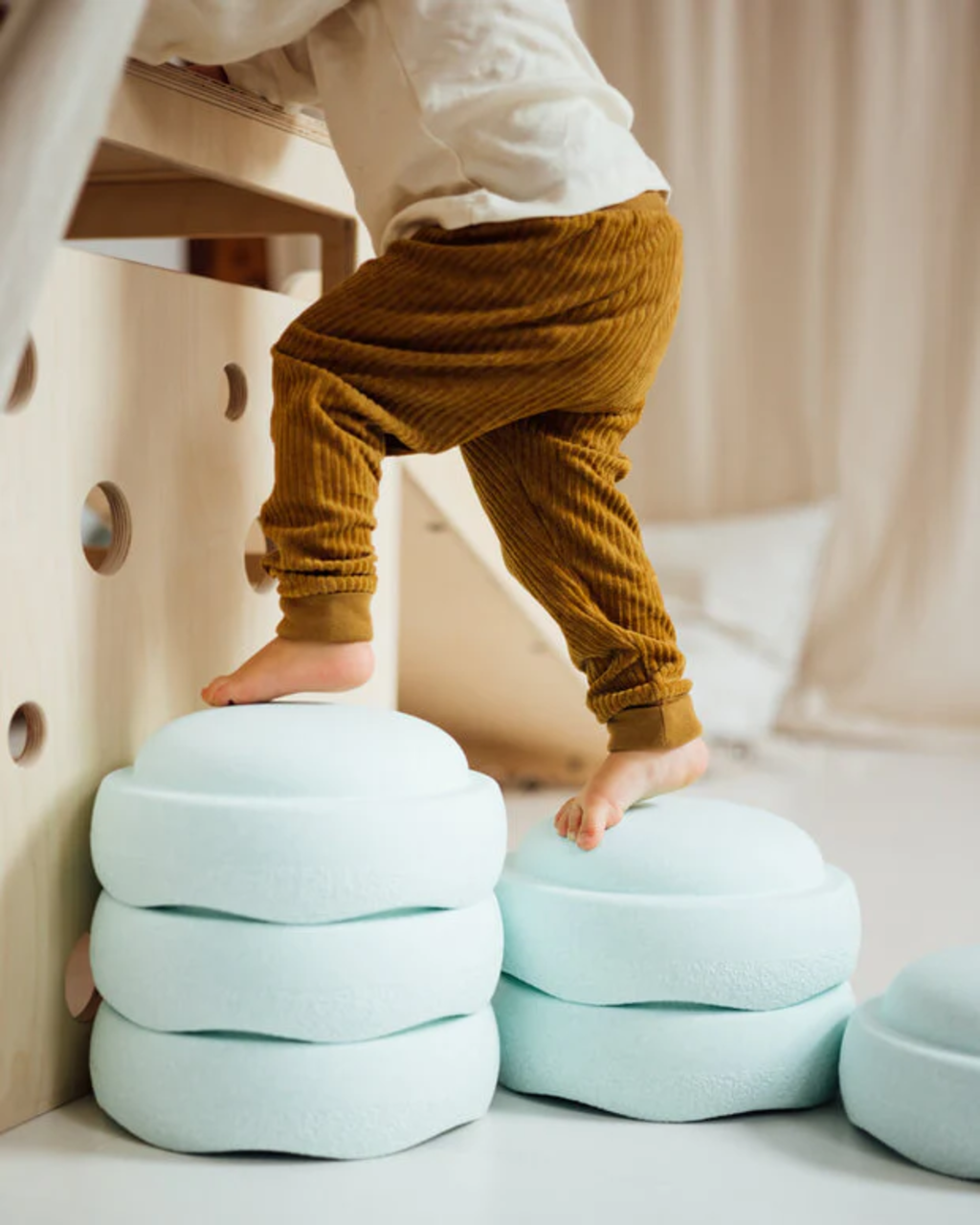 Gli elementi Stapelstein® Original Ocean uniscono movimento e sostenibilità. I bambini possono costruire torri, mantenere l'equilibrio, saltare o creare mondi di gioco. La speciale palette cromatica e il materiale riciclato danno vita a un gioco consapevole, che si integra in modo flessibile in ogni idea di gioco.