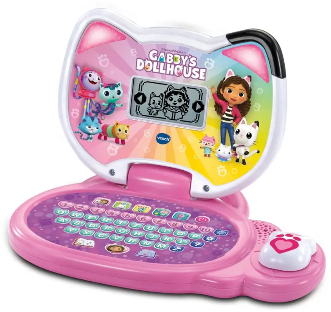 Il computer portatile didattico a forma di gatto di VTech trasporta i bambini dai 3 anni in su nel colorato mondo della Casa delle Bambole di Gabby. Con 18 attività interattive, orecchie di gatto luminose e uno schermo LCD retroilluminato, i bambini scoprono giocando lettere, numeri, forme, musica e logica. Grazie alla tastiera QWERTY, al grande mouse Pandy e alle modalità di apprendimento categorizzate, imparare diventa un'esperienza divertente.