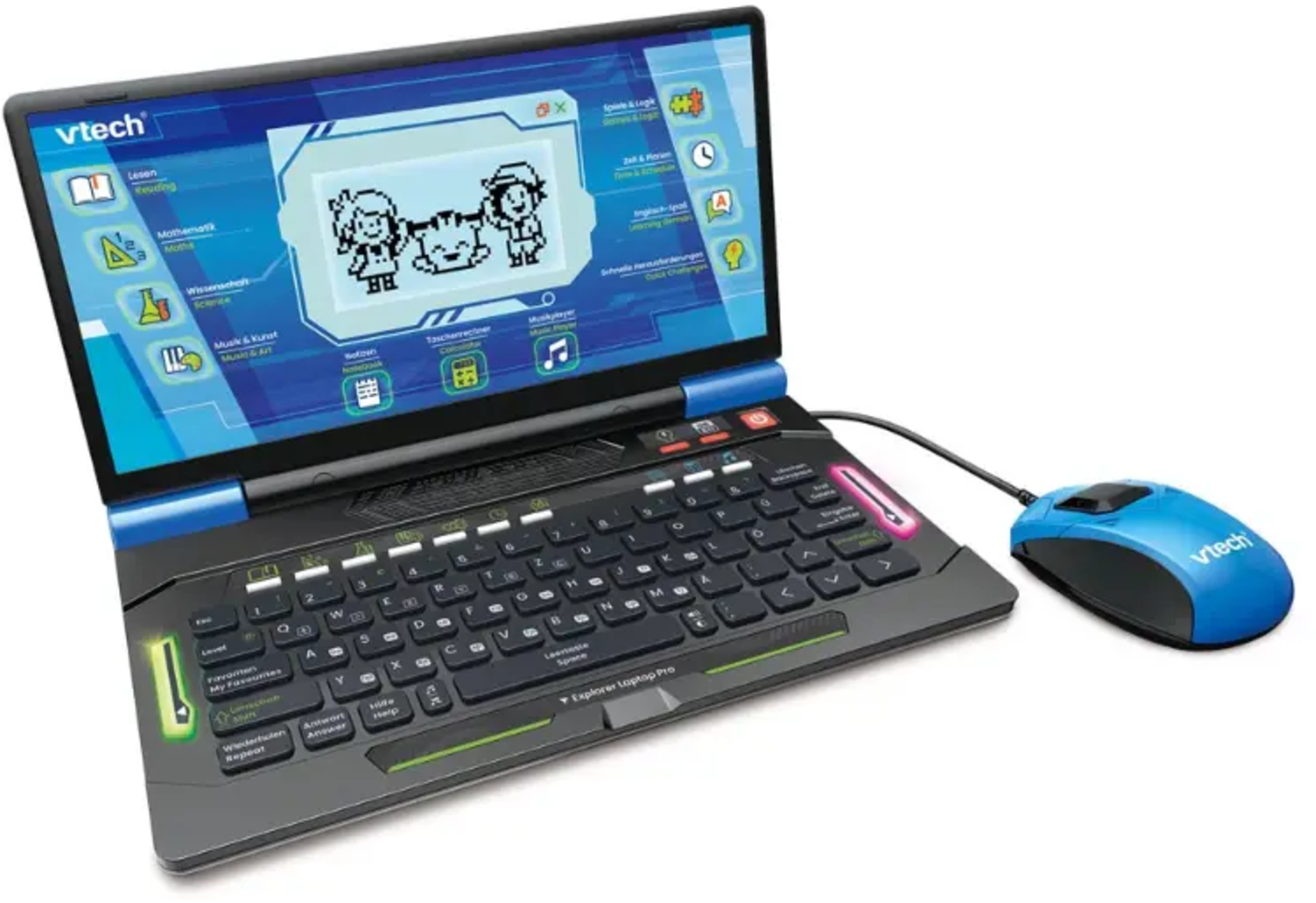 Il VTech Explorer Laptop Pro offre ai bambini dai 6 anni in su un mondo di apprendimento interattivo ricco di giochi e attività entusiasmanti. Con 164 giochi didattici in tedesco e inglese, 8 categorie di apprendimento e il sistema di apprendimento LES, lettura, matematica, inglese e molto altro vengono stimolati in modo giocoso. Il design a misura di bambino, il display LCD retroilluminato e le funzioni versatili rendono il laptop un compagno ideale per la casa e in viaggio.