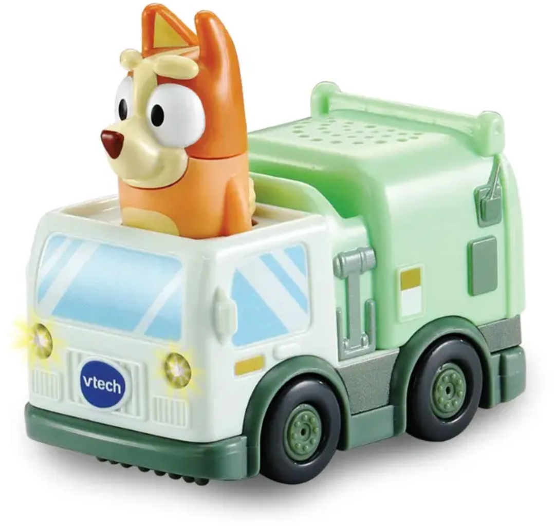 Con il camion della spazzatura di Bingo della linea Tut Tut Baby Flitzer ogni viaggio diventa una piccola avventura. Frasi allegre, melodie e la voce originale di Bingo della serie Bluey accompagnano il gioco, stimolando la motricità, il movimento e il gioco di ruolo creativo in modo naturale e divertente.
